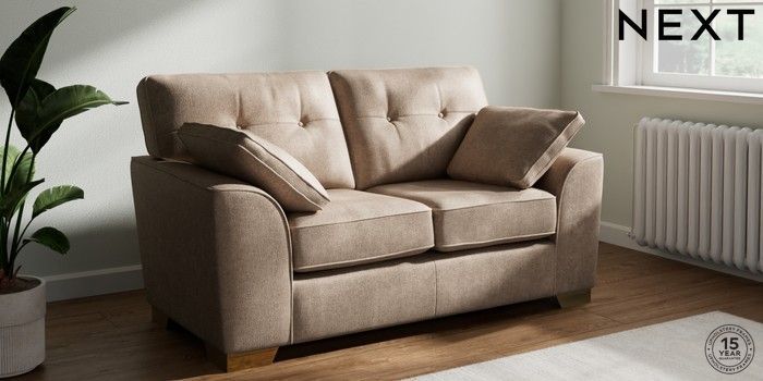 7.2.10 Buy Stamford Buttoned Back 2 Seater Small Sofa Plush Chenille Mid Natural Large Square Angle - Brushed Brass from the Seasons online shop Click here to use our website with more accessibility support, for example screen readers