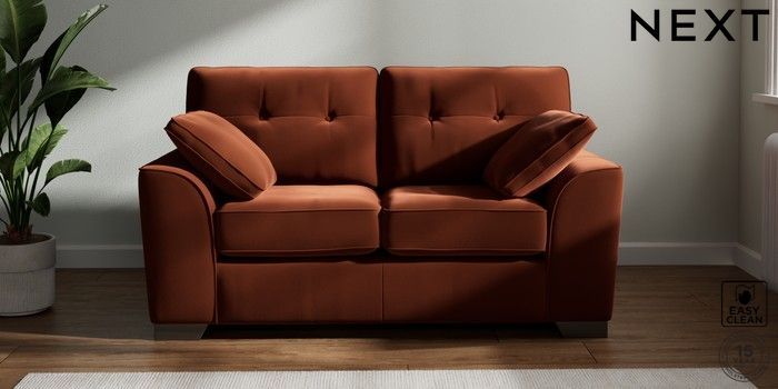 7.3.1 Buy Stamford Buttoned Back 2 Seater Small Sofa Plush Velvet Easy Clean Ginger Orange Large Square Angle - Gunmetal from the Seasons online shop Click here to use our website with more accessibility support, for example screen readers
