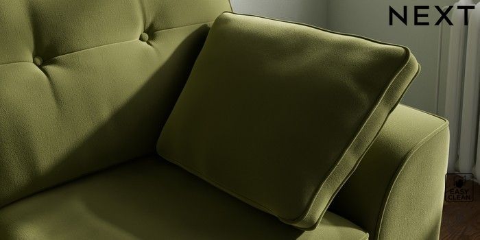 7.3.1 Buy Stamford Buttoned Back 2 Seater Small Sofa Plush Velvet Easy Clean Mid Olive Green Large Square Angle - Gunmetal from the Seasons online shop Click here to use our website with more accessibility support, for example screen readers