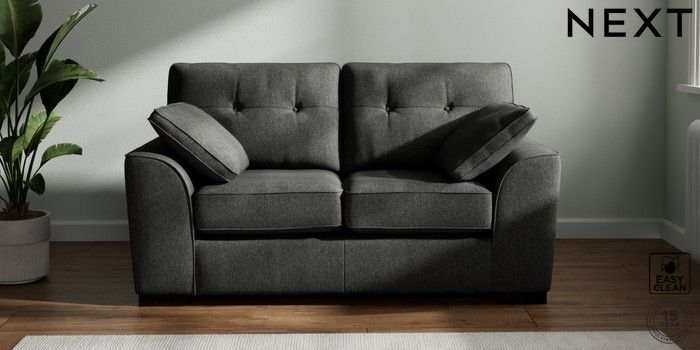 7.2.10 Buy Stamford Buttoned Back 2 Seater Small Sofa Tweedy Blend Easy Clean Charcoal Grey Large Square Angle - Dark from the Seasons online shop Click here to use our website with more accessibility support, for example screen readers