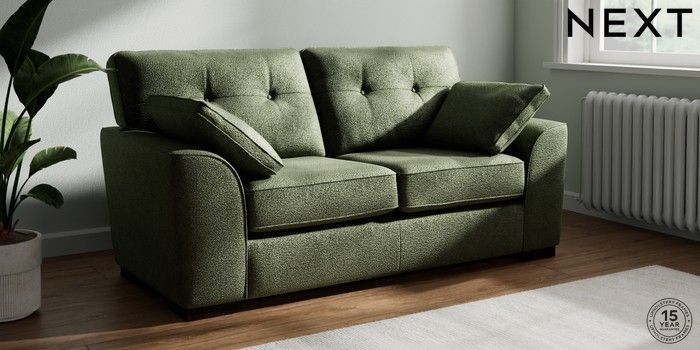 7.2.10 Buy Stamford Buttoned Back 2 Seater Sofa Boucle Chenille Dark Moss Green Large Square Angle - Dark from the Seasons online shop Click here to use our website with more accessibility support, for example screen readers