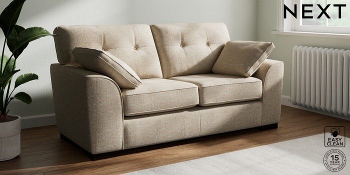 7.2.10 Buy Stamford Buttoned Back 2 Seater Sofa Boucle Weave Easy Clean Dark Natural Large Square Angle - Dark from the Seasons online shop Click here to use our website with more accessibility support, for example screen readers