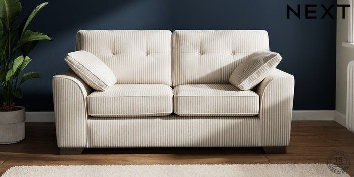 7.3.1 Buy Stamford Buttoned Back 2 Seater Sofa Chenille Stripe Natural Large Square Angle - Gunmetal from the Seasons online shop Click here to use our website with more accessibility support, for example screen readers