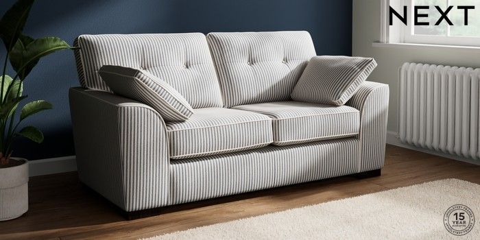 7.3.1 Buy Stamford Buttoned Back 2 Seater Sofa Chenille Stripe Slate Blue Large Square Angle - Dark from the Seasons online shop Click here to use our website with more accessibility support, for example screen readers