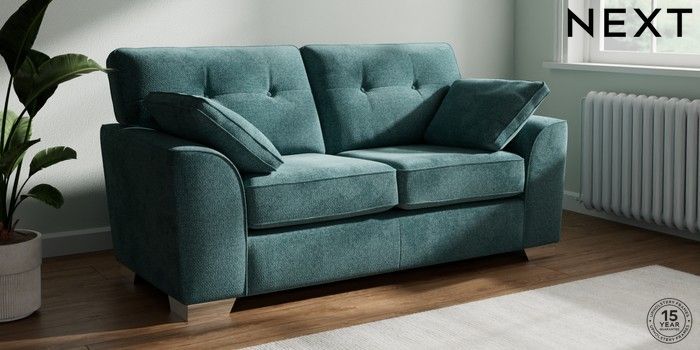 7.3.1 Buy Stamford Buttoned Back 2 Seater Sofa Chunky Chenille Mid Teal Green Large Square Angle - Chrome Metal from the Seasons online shop Click here to use our website with more accessibility support, for example screen readers