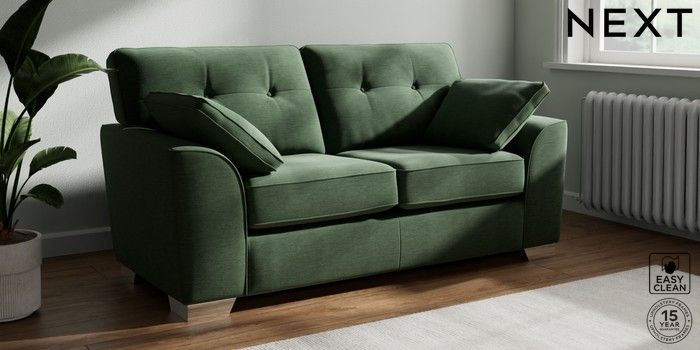 7.3.1 Buy Stamford Buttoned Back 2 Seater Sofa Fine Chenille Easy Clean Mid Khaki Green Large Square Angle - Chrome Metal from the Seasons online shop Click here to use our website with more accessibility support, for example screen readers