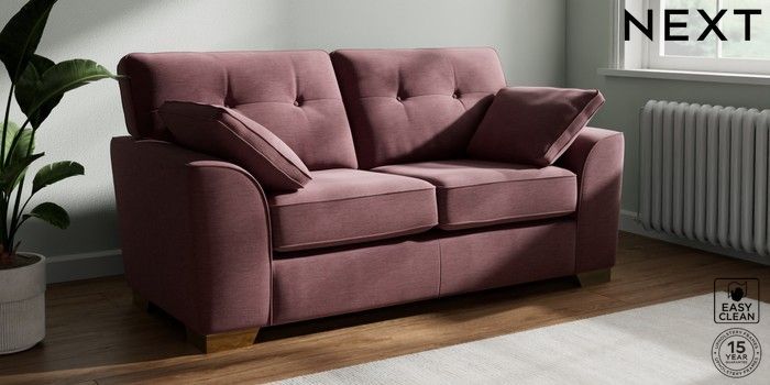 7.3.1 Buy Stamford Buttoned Back 2 Seater Sofa Fine Chenille Easy Clean Mid Mulberry Purple Large Square Angle - Brushed Brass from the Seasons online shop Click here to use our website with more accessibility support, for example screen readers