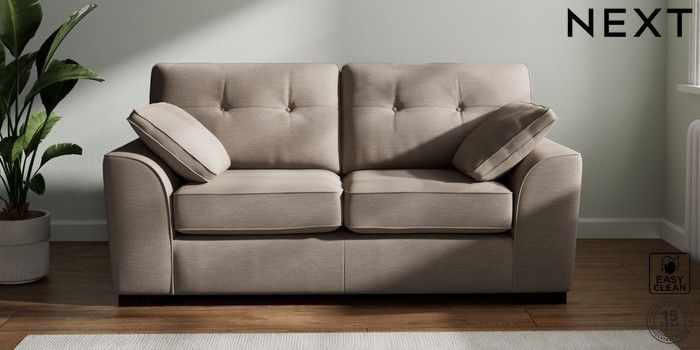 7.2.10 Buy Stamford Buttoned Back 2 Seater Sofa Fine Chenille Easy Clean Mid Taupe Brown Large Square Angle - Dark from the Seasons online shop Click here to use our website with more accessibility support, for example screen readers