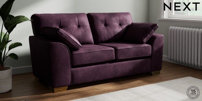 7.3.1 Buy Stamford Buttoned Back 2 Seater Sofa Plush Chenille Dark Plum Purple Large Square Angle - Brushed Brass from the Seasons online shop Click here to use our website with more accessibility support, for example screen readers