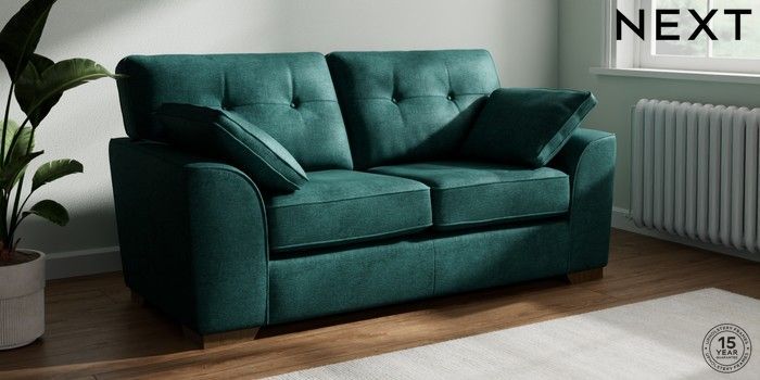 7.2.10 Buy Stamford Buttoned Back 2 Seater Sofa Plush Chenille Dark Teal Green Large Square Angle - Mid from the Seasons online shop Click here to use our website with more accessibility support, for example screen readers