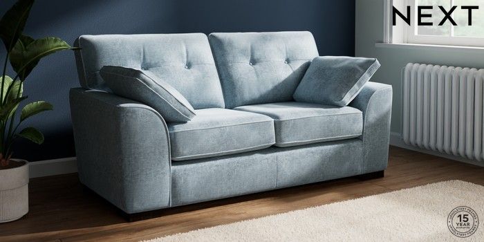 7.2.10 Buy Stamford Buttoned Back 2 Seater Sofa Plush Chenille Light Blue Large Square Angle - Dark from the Seasons online shop Click here to use our website with more accessibility support, for example screen readers