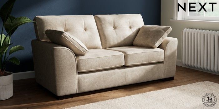 7.2.10 Buy Stamford Buttoned Back 2 Seater Sofa Plush Chenille Light Natural Large Square Angle - Dark from the Seasons online shop Click here to use our website with more accessibility support, for example screen readers