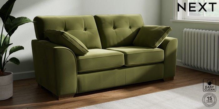 7.3.1 Buy Stamford Buttoned Back 2 Seater Sofa Plush Velvet Easy Clean Mid Olive Green Large Square Angle - Mid from the Seasons online shop Click here to use our website with more accessibility support, for example screen readers