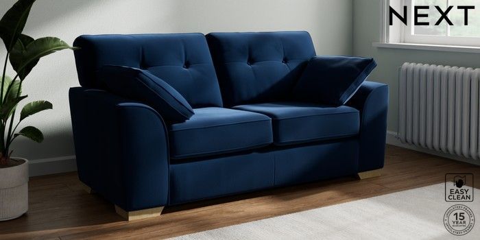 7.2.10 Buy Stamford Buttoned Back 2 Seater Sofa Plush Velvet Easy Clean Navy Blue Large Square Angle - Light from the Seasons online shop Click here to use our website with more accessibility support, for example screen readers