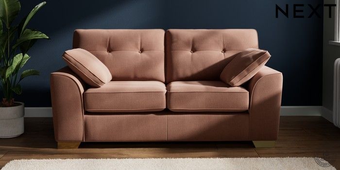 7.2.10 Buy Stamford Buttoned Back 2 Seater Sofa Relaxed Linen Look Light Rust Brown Large Square Angle - Brushed Brass from the Seasons online shop Click here to use our website with more accessibility support, for example screen readers