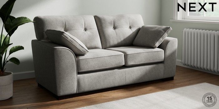 7.2.10 Buy Stamford Buttoned Back 2 Seater Sofa Tweedy Chenille Mid Grey Large Square Angle - Dark from the Seasons online shop Click here to use our website with more accessibility support, for example screen readers