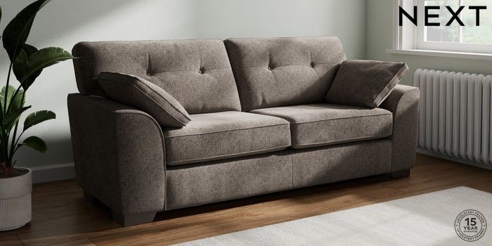 7.3.1 Buy Stamford Buttoned Back 3 Seater Sofa Chunky Chenille Mink Brown Large Square Angle - Gunmetal from the Seasons online shop Click here to use our website with more accessibility support, for example screen readers