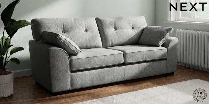7.2.10 Buy Stamford Buttoned Back 3 Seater Sofa Chunky Weave Mid Grey Large Square Angle - Dark from the Seasons online shop Click here to use our website with more accessibility support, for example screen readers