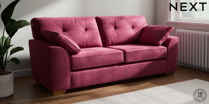 7.2.10 Buy Stamford Buttoned Back 3 Seater Sofa Cotswold Chenille Dark Raspberry Pink Large Square Angle - Brushed Brass from the Seasons online shop Click here to use our website with more accessibility support, for example screen readers