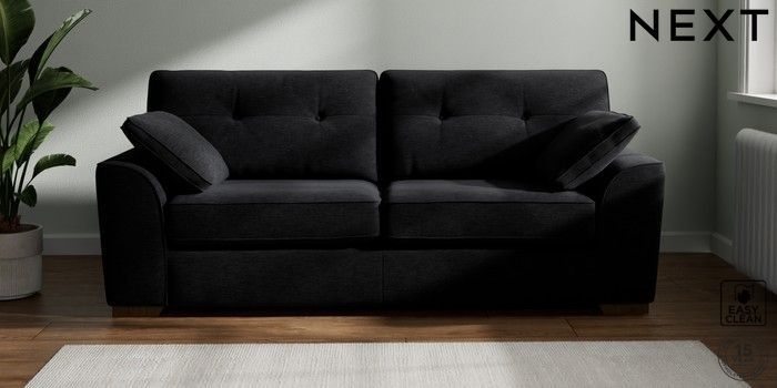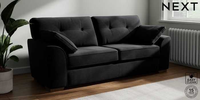 7.2.10 Buy Stamford Buttoned Back 3 Seater Sofa Fine Chenille Easy Clean Black Large Square Angle - Mid from the Seasons online shop Click here to use our website with more accessibility support, for example screen readers