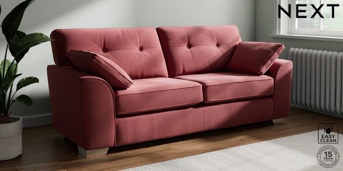 7.3.1 Buy Stamford Buttoned Back 3 Seater Sofa Fine Chenille Easy Clean Mid Pink Large Square Angle - Chrome Metal from the Seasons online shop Click here to use our website with more accessibility support, for example screen readers