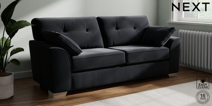 7.3.1 Buy Stamford Buttoned Back 3 Seater Sofa Plush Velvet Easy Clean Charcoal Grey Large Square Angle - Chrome Metal from the Seasons online shop Click here to use our website with more accessibility support, for example screen readers