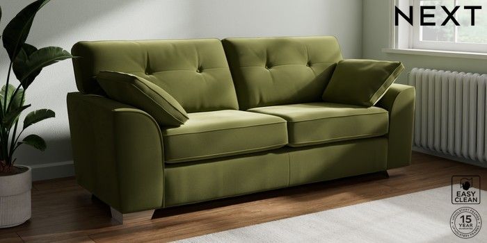 7.3.1 Buy Stamford Buttoned Back 3 Seater Sofa Plush Velvet Easy Clean Mid Olive Green Large Square Angle - Chrome Metal from the Seasons online shop Click here to use our website with more accessibility support, for example screen readers