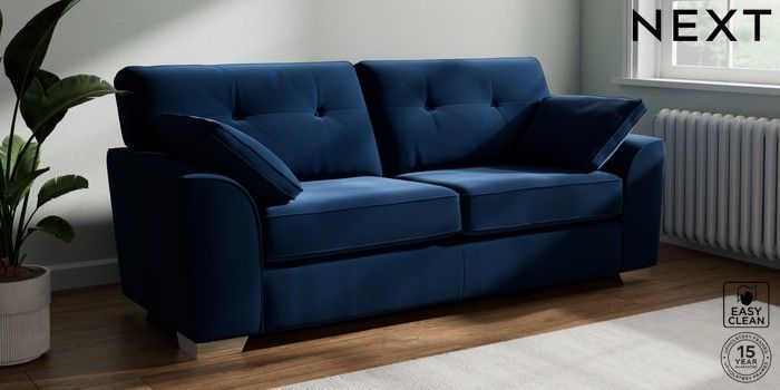 7.3.1 Buy Stamford Buttoned Back 3 Seater Sofa Plush Velvet Easy Clean Navy Blue Large Square Angle - Chrome Metal from the Seasons online shop Click here to use our website with more accessibility support, for example screen readers