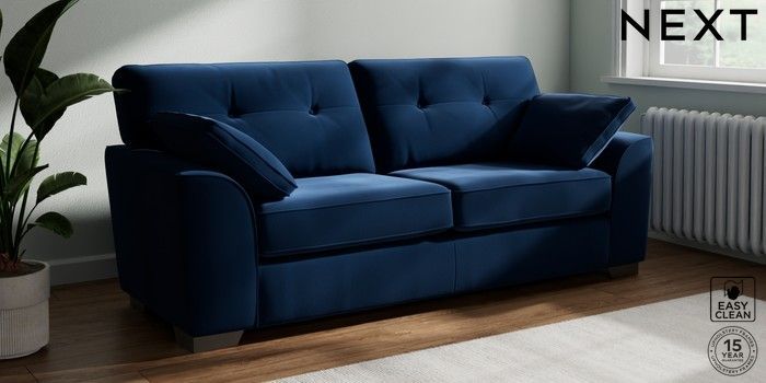 7.3.1 Buy Stamford Buttoned Back 3 Seater Sofa Plush Velvet Easy Clean Navy Blue Large Square Angle - Gunmetal from the Seasons online shop Click here to use our website with more accessibility support, for example screen readers