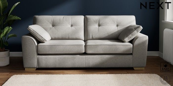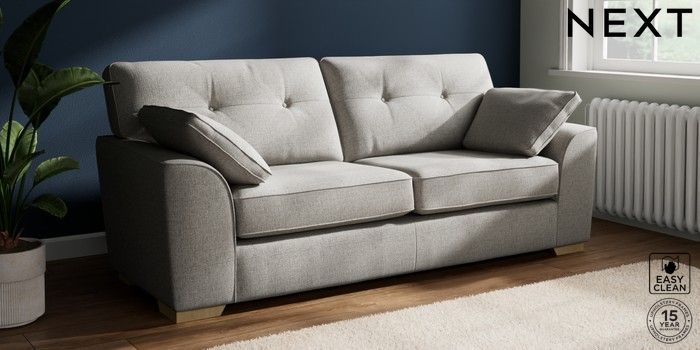 7.2.10 Buy Stamford Buttoned Back 3 Seater Sofa Woven Chenille Easy Clean Light Grey Large Square Angle - Light from the Seasons online shop Click here to use our website with more accessibility support, for example screen readers