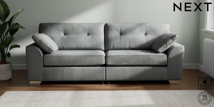 7.2.10 Buy Stamford Buttoned Back 4 Seater Sofa Chunky Boucle Easy Clean Mid Grey Large Square Angle - Chrome Metal from the Seasons online shop Click here to use our website with more accessibility support, for example screen readers