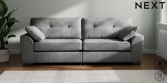7.3.1 Buy Stamford Buttoned Back 4 Seater Sofa Chunky Boucle Easy Clean Mid Grey Large Square Angle - Gunmetal from the Seasons online shop Click here to use our website with more accessibility support, for example screen readers