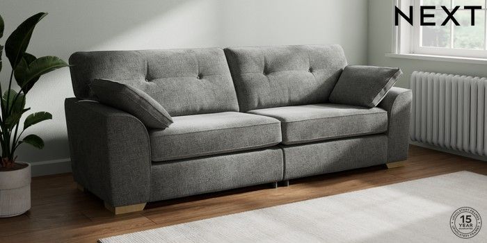 7.2.10 Buy Stamford Buttoned Back 4 Seater Sofa Chunky Chenille Dark Grey Large Square Angle - Light from the Seasons online shop Click here to use our website with more accessibility support, for example screen readers