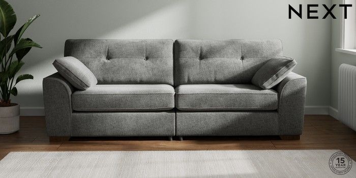 7.2.10 Buy Stamford Buttoned Back 4 Seater Sofa Chunky Chenille Dark Grey Large Square Angle - Mid from the Seasons online shop Click here to use our website with more accessibility support, for example screen readers