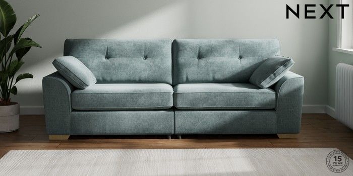 7.2.10 Buy Stamford Buttoned Back 4 Seater Sofa Chunky Chenille Light Teal Green Large Square Angle - Light from the Seasons online shop Click here to use our website with more accessibility support, for example screen readers