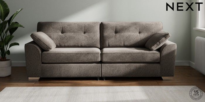 7.2.10 Buy Stamford Buttoned Back 4 Seater Sofa Chunky Chenille Mink Brown Large Square Angle - Chrome Metal from the Seasons online shop Click here to use our website with more accessibility support, for example screen readers