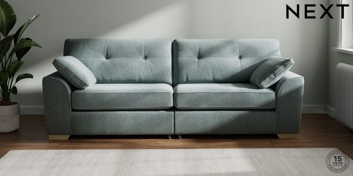 7.2.10 Buy Stamford Buttoned Back 4 Seater Sofa Chunky Marl Mid Blue Large Square Angle - Light from the Seasons online shop Click here to use our website with more accessibility support, for example screen readers