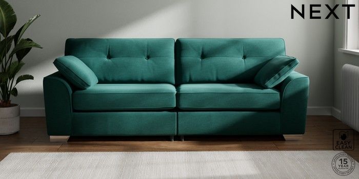 7.3.1 Buy Stamford Buttoned Back 4 Seater Sofa Fine Chenille Easy Clean Dark Juniper Green Large Square Angle - Chrome Metal from the Seasons online shop Click here to use our website with more accessibility support, for example screen readers
