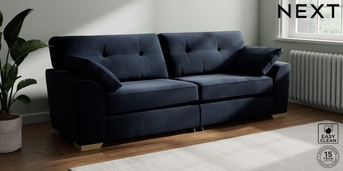 7.2.10 Buy Stamford Buttoned Back 4 Seater Sofa Fine Chenille Easy Clean Dark Navy Blue Large Square Angle - Light from the Seasons online shop Click here to use our website with more accessibility support, for example screen readers