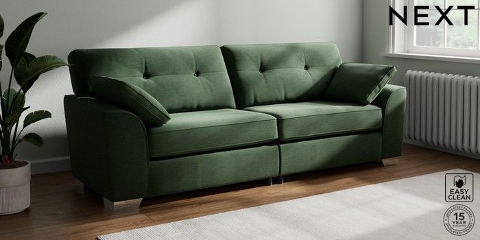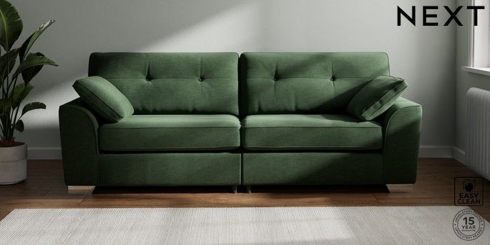 7.3.1 Buy Stamford Buttoned Back 4 Seater Sofa Fine Chenille Easy Clean Mid Khaki Green Large Square Angle - Chrome Metal from the Seasons online shop Click here to use our website with more accessibility support, for example screen readers