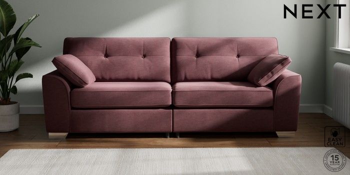 7.3.1 Buy Stamford Buttoned Back 4 Seater Sofa Fine Chenille Easy Clean Mid Mulberry Purple Large Square Angle - Chrome Metal from the Seasons online shop Click here to use our website with more accessibility support, for example screen readers