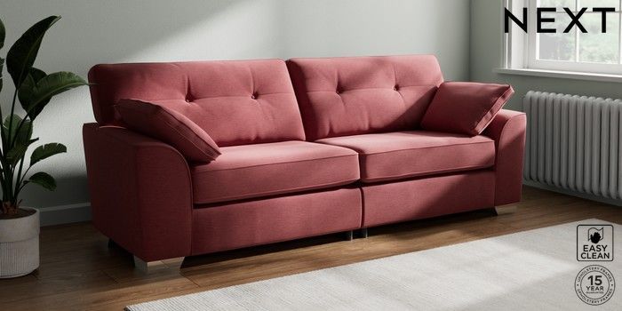 7.3.1 Buy Stamford Buttoned Back 4 Seater Sofa Fine Chenille Easy Clean Mid Pink Large Square Angle - Chrome Metal from the Seasons online shop Click here to use our website with more accessibility support, for example screen readers