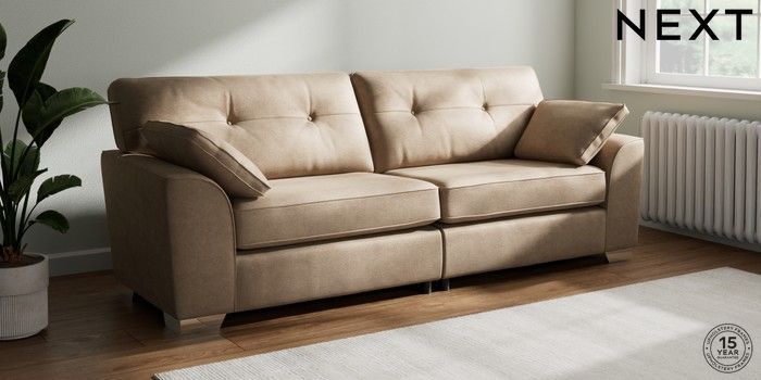 Bring timeless charm and ultimate family comfort to your home with the Stamford Buttoned sofa. Its large size and plush bolster cushions make it ideal for cosying up on. The "Firmer Sit" seat cushions provide exceptional support and durability, always returning to their tailored shape. These low-maintenance, reversible cushions are designed for lasting good looks. Personalise your Stamford Buttoned by picking from a vast selection of fabrics and various feet options. This range has a sofa bed. Sofa beds are a practical and comfortable addition to any home, big or small. Our sofa beds are pull-out beds containing a separate 6cm occasional foam mattress. This pull-out mechanism is concealed underneath the main cushions. We have sofa beds across multiple ranges, but they all are 120cm in width and 180cm in length, so we suggest a double duvet and a double flat sheet to dress your sofa bed.