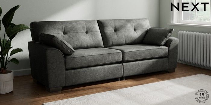 7.2.10 Buy Stamford Buttoned Back 4 Seater Sofa Plush Chenille Dark Grey Large Square Angle - Gunmetal from the Seasons online shop Click here to use our website with more accessibility support, for example screen readers