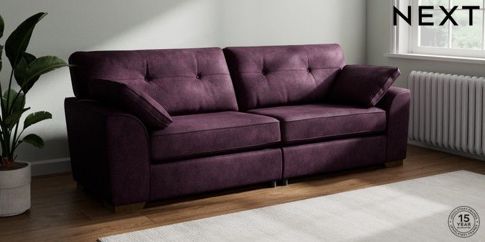 7.2.10 Buy Stamford Buttoned Back 4 Seater Sofa Plush Chenille Dark Plum Purple Large Square Angle - Mid from the Seasons online shop Click here to use our website with more accessibility support, for example screen readers