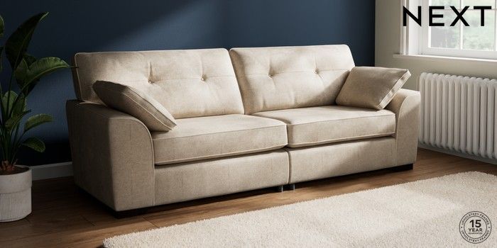 7.2.10 Buy Stamford Buttoned Back 4 Seater Sofa Plush Chenille Light Natural Large Square Angle - Dark from the Seasons online shop Click here to use our website with more accessibility support, for example screen readers