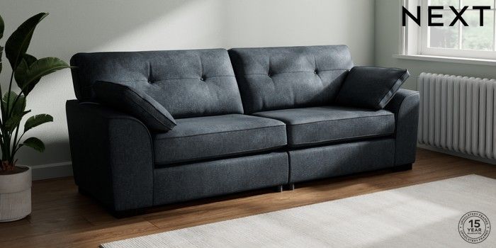 7.2.10 Buy Stamford Buttoned Back 4 Seater Sofa Plush Chenille Slate Blue Large Square Angle - Dark from the Seasons online shop Click here to use our website with more accessibility support, for example screen readers