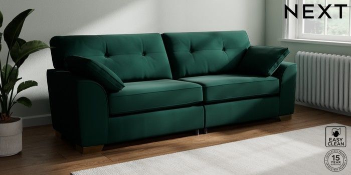 7.3.1 Buy Stamford Buttoned Back 4 Seater Sofa Plush Velvet Easy Clean Bottle Green Large Square Angle - Brushed Brass from the Seasons online shop Click here to use our website with more accessibility support, for example screen readers