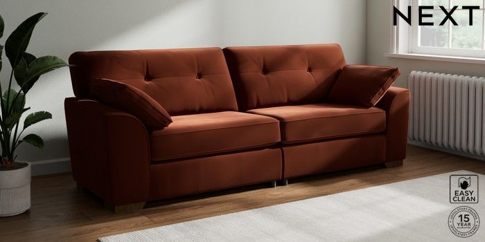 7.2.10 Buy Stamford Buttoned Back 4 Seater Sofa Plush Velvet Easy Clean Ginger Orange Large Square Angle - Mid from the Seasons online shop Click here to use our website with more accessibility support, for example screen readers