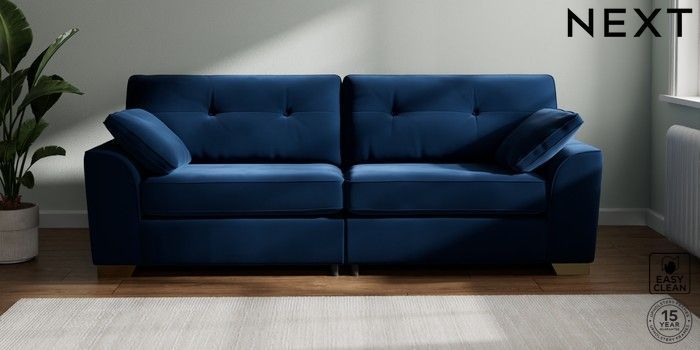 7.3.1 Buy Stamford Buttoned Back 4 Seater Sofa Plush Velvet Easy Clean Navy Blue Large Square Angle - Brushed Brass from the Seasons online shop Click here to use our website with more accessibility support, for example screen readers